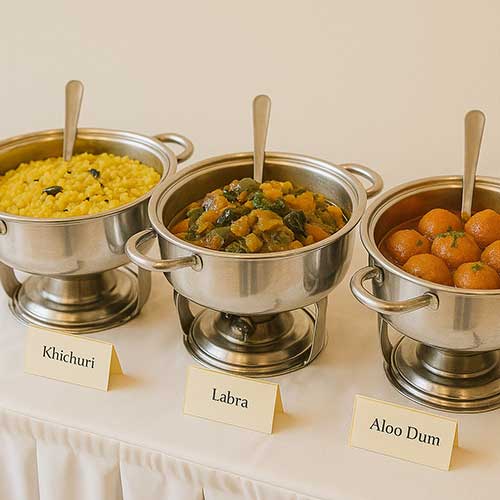 For Durga Puja, Lakshmi Puja, Annaprasan, or any family ritual, we offer pure veg meals cooked in a traditional style. We understand the sanctity of puja events and provide hygienic, homely, and sattvic catering.