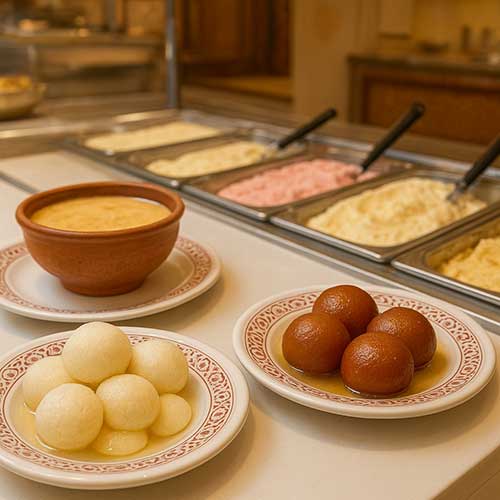 2Customize Your MenuTell us your menu preferences — whether you’d like a fully vegetarian, non-vegetarian, or mixed menu. We offer traditional Bengali dishes, kid-friendly options, festival specials, and live counters like puchka, pasta, or jalebi. You can also request custom items or share dietary restrictions (e.g., Jain, diabetic, no onion/garlic, etc.) so we can tailor the perfect menu for your event.